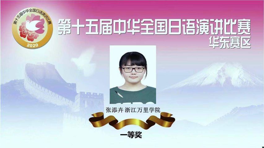 张添卉成绩一直在班上名列前茅,曾获得过第十一届大学生日语演讲比赛(浙皖赣地区)二等奖。谈起参加这场比赛的初衷,张添卉表示,“一方面是老师推荐,另一方面我所在的外语学院开创竞赛与毕业论文的结合新模式,提高了我的参赛热情。”