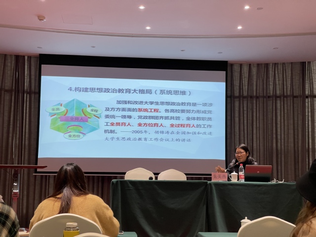 朱美燕从思想政治教育的概念出发,系统阐述了何谓思想政治教育,为何要开展思想政治教育以及如何开展思想政治教育。随后,她结合后勤生活思政工作开展实际,从方法论的角度将生动案例融入课程,直观、明了地从立德树人这一根本任务讲解何谓生活思政,如何做好生活思政工作等。