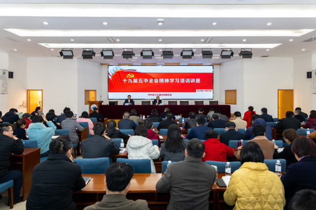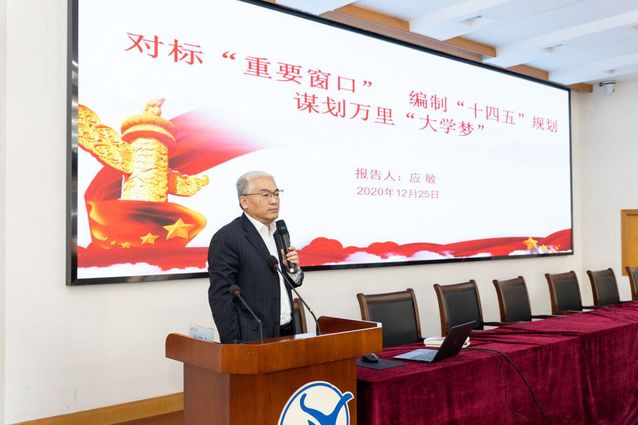12月25日下午,校长应敏以“对标‘重要窗口’,编制‘十四五’规划,谋划万里‘大学梦’”为题宣讲党的十九届五中全会精神,马建荣、陈建荣、王福银、梁丰等学校领导班子成员,全体中层干部、中青年骨干培训班学员参加学习。党委组织部部长朱邦相主持讲座。