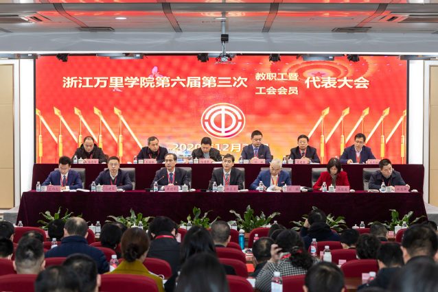 12月29日,我校图书馆报告厅一派祥和的气氛,学校第六届第三次教职工代表大会暨工会会员代表大会在这里举行。浙江省万里教育集团总裁、党委副书记林良富,校长应敏、党委书记蒋建军等校领导和教职工代表、列席代表193人出席大会。