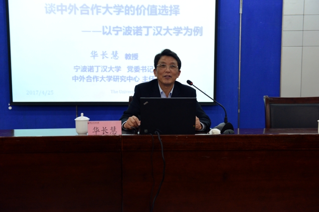 对于中外合作大学的价值选择,华长慧结合宁波诺丁汉大学的办学实践,从办学原则、教学策略、育人指向等三方面进行了全面阐述。华书记指出要坚持优质性、开放性、互补性、辐射性和规范性的办学原则,发挥国际化办学对我国高等教育的促进作用,遵循法律法规,把握育人方向。