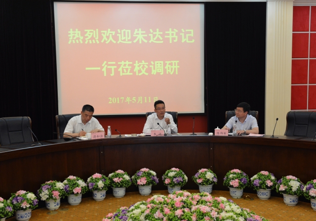 5月11日,市委教育工委书记朱达、市教育局办公室主任蒋和法、市教育局宣德处处长陈伟军一行前来我校考察调研,并与学校班子领导进行了座谈。