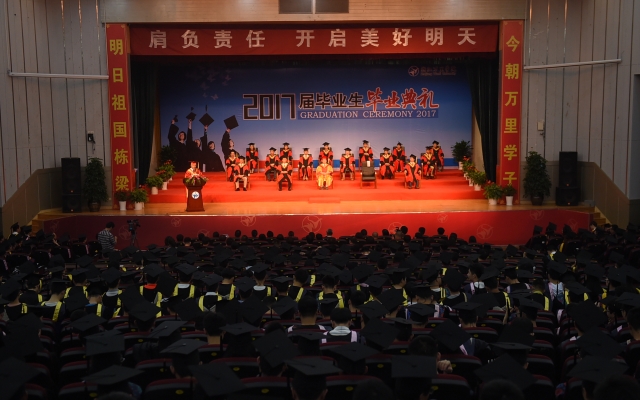 6月14日至16日,我校2017届毕业生毕业典礼在素质拓展中心隆重举行。名誉校长石钟慈院士,万里学院董事长、诺丁汉大学理事长徐亚芬女士,校长应敏等校领导及各学院领导、教师代表、学生代表和家长代表出席了此次典礼。