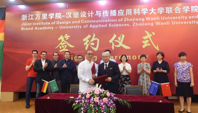 届时,浙江万里学院将引进国际品牌设计与传播领域优质的教育资源,整合中德两校在国际品牌领域的研究、设计、传播与管理的学科优势,培养国际化品牌设计与传播领域的高素质应用型本科人才,为中国的创意产业发展、文化品牌设计与传播建设和我国产品走出去发展战略提供人才和服务支撑。双方认同致力于应用型高校国际合作的典范和国际化复合型人才培养的典范。