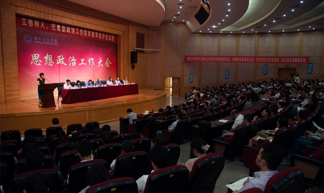 全体中层干部、马克思主义学院教师、班主任、辅导员及教师代表、学生代表等500余名师生参加会议。