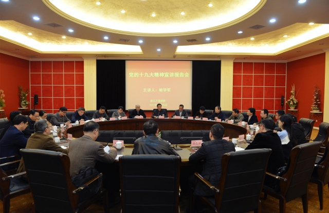 鲍学军围绕十九大报告,聚焦大会主题,聚焦习近平新时代中国特色社会主义思想、聚焦十八大以来的历史性成就和变革、新时代中国共产党的历史使命、中国共产党党章、全面从严治党、新时代社会主要矛盾的转化等,对党的十九大提出的新思想、新论断、新要求、新任务作了全面系统的解读。