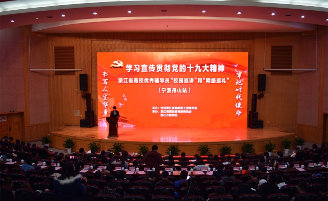 12月12日下午,由中共浙江省委教育工作委员会主办的“学习宣传贯彻党的十九大精神---浙江省高校优秀辅导员‘校园巡讲’和‘网络巡礼’”报告会在浙江万里学院学术报告厅举行。