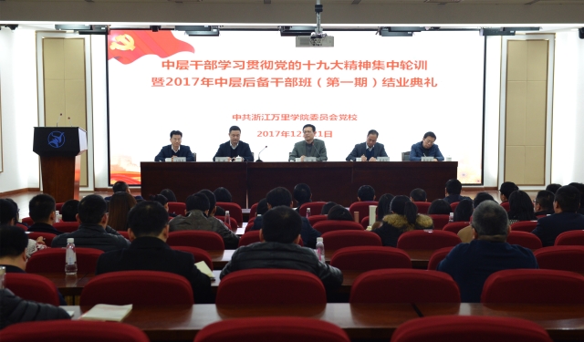 12月21日下午,2017年中层后备干部培训班(第一期)结业典礼在图书馆报告厅举行。浙江省万里教育集团董事长、党委书记、总裁应雄出席并讲话。结业典礼由党委书记蒋建军主持。