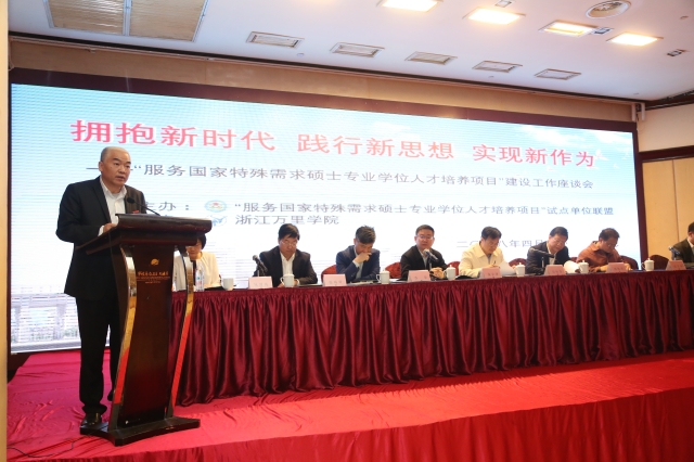 浙江万里学院校长应敏和陈根芳副厅长分别代表学校和浙江省教育厅致词。陈根芳介绍了我省“双一流”建设和实现高等教育强省宏伟蓝图的创新举措,对我省“特需项目”试点高校建设成效给予了肯定,提出要“以人才培养的高质量、高效益、有特色为总目标,努力打造服务国家特殊需求人才培养项目的浙江样本”的新要求。