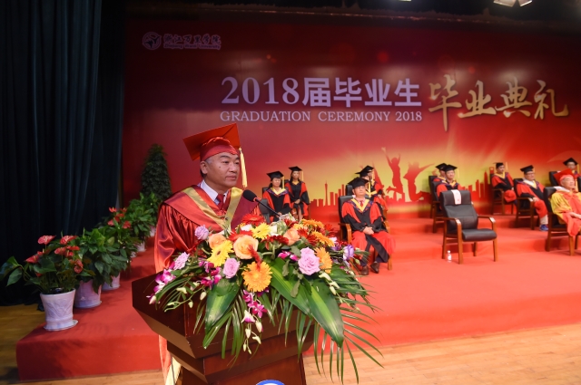 今天,2018届毕业生迎来了隆重的毕业典礼,这是一个终点,也是一个新的起点,接下来你们会离开这片培育了你们四年的美丽校园,步入社会,踏上征程,希望你们学以致用,服务社会!你们已经结束了理论学习的人生阶段,开始踏上社会实践的征程,不是学得好,就工作得好,社会实践中,需要你们找准自己的职业发展之路,细细谋划,在工作中,不断调整,正确选择,正确把握。
