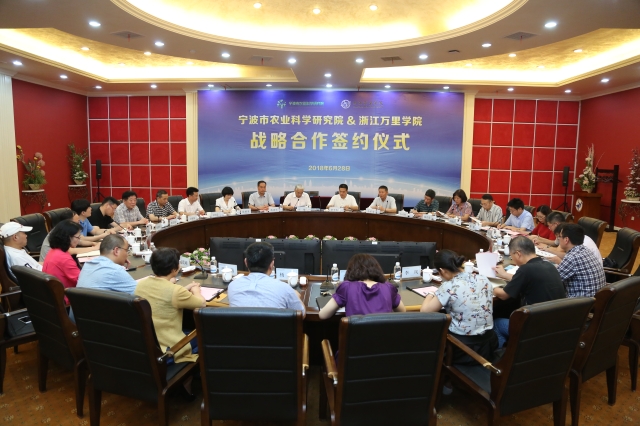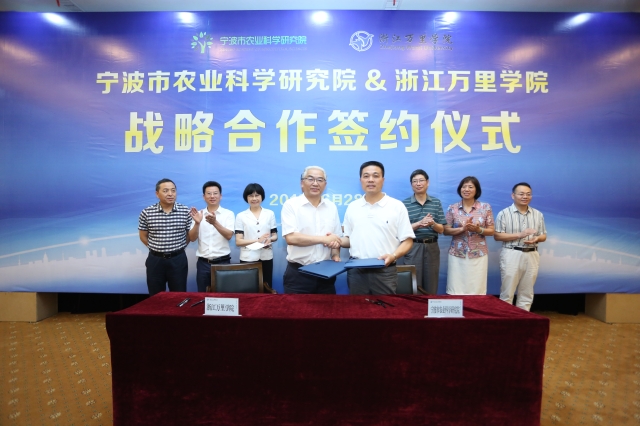 6月28日,浙江万里学院与宁波市农业科学研究院签署战略合作协议,将围绕科研项目、成果奖项、人才培养等方面开展合作,以进一步促进产学研与学校应用型大学建设,加快宁波市农业特色产业转型升级。