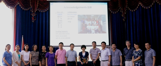 钱国英教授以通俗易懂的语言、图文并茂的形式讲解了该项科研成果的研究动机、核心论点、研究方法和结论。据钱国英教授介绍,该成果以 “The histone demethylase KDM6B regulates temperature- dependent sex determination in a turtle species” (《组蛋白去甲基化酶KDM6B调控一种龟的温度依赖型性别决定)》为题,分析和揭示了龟类物种表观遗传机制与温度依赖性别决定之间的因果关系和直接遗传联系。此项研究解决了一部分表观遗传的基理,使表观遗传理论往前推了一大步。她还表示,其所在团队针对此项成果后续会进行更加深入的研究。最后,钱国英教授还与民进万里支部会员分享了其近年来的科研历程与心得。