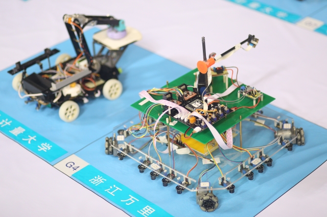经过为期两天的激烈角逐后,浙江工业大学“浙江大银江Boom3队”等5队获得光电四轮组一等奖、浙江工业大学“浙江大银江电磁一队”等4队获得三轮电磁组一等奖、浙江大学 “浙大直立一队”等3队获得两轮直立组一等奖、杭州电子科技大学“杭电双车二队”等2队获得双车会车组一等奖、杭州电子科技大学信息工程学院 “杭电信工RIGOL电感七队”等2队获得无限节能组一等奖、中国计量大学现代科技学院“皮几下”等两队获得信标对抗组一等奖、杭州电子科技大学“杭电创意一队”获得创意组一等奖。
