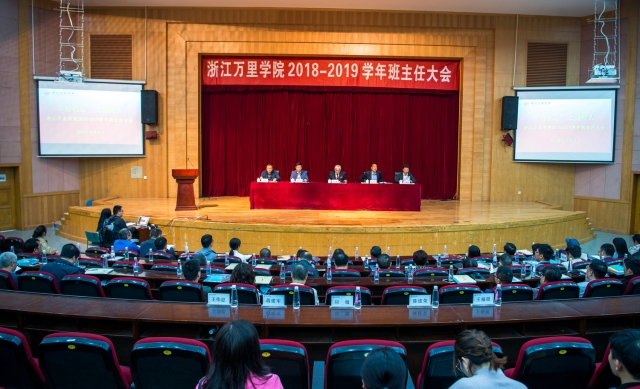 10月16日,我校2018-2019学年班主任大会在学术报告厅举行。校长应敏、党委书记蒋建军、纪委书记陈建荣、党委副书记王伟忠、秘书长王福银、各二级学院领导班子、相关部门负责人同我校全体班主任参加会议。会议由蒋建军主持。