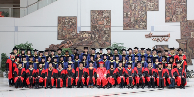 毕业典礼结束后,参加典礼的领导、老师们与2019届研究生合影留念。