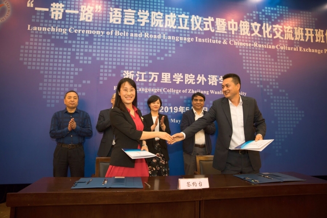 5月8日,在市教育局等有关部门指导下,由浙江万里学院外语学院牵头成立的“一带一路”语言学院成立仪式暨中俄文化交流班开班仪式成功举行。