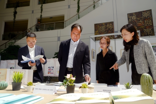 本次实物展览中展出了汉语言文学专业持续10余年的《文学与人生》、《文苑》等学生杂志作品,以及学生“田野风”社团整理的60多万字的《宁波知青口述史》、近20万字的《万里校史》等。10余个展板则具体展示了该专业各门课程开展课程思政的精彩图片与报道,如《中国古代文学》课程举行中国古代诗歌吟诵大会、“古典诗词与人生”演讲大赛,让学生深刻体悟中国古人智慧,领悟传统文化生生不息的生命力;《文学概论》采用“课程思政”分享会的形式“感悟文学,见证成长”;《现代汉语》采用中华经典诵读、猜字谜等形式领略汉字之美。