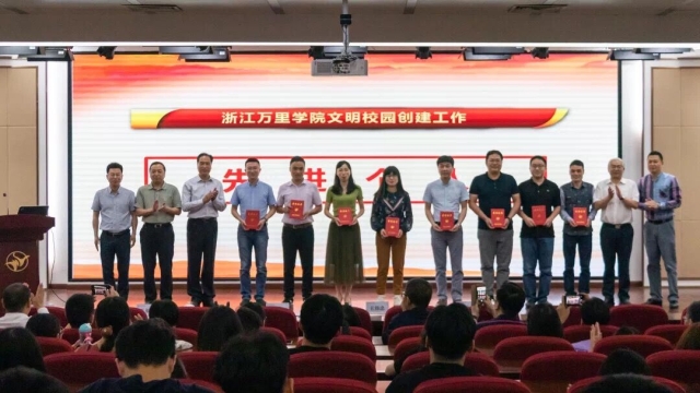 会上,蒋建军宣读了《关于表彰2018年度浙江万里学院文明校园创建工作先进集体和先进个人的决定》,相关校领导代表学校对先进集体与先进个人进行了表彰。