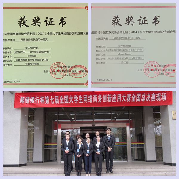 11月28日-12月1日在北京举行的邮储银行杯中国互联网协会第七届全国大学生网络商务创新应用大赛全国总决赛中,现代物流学院由钟海东、钟晓军老师指导的《碎片式学习-大学生移动微课平台》荣获一等奖,吕红波老师指导的《电子商务服务外包计划书(以厨具行业为例)》荣获三等奖。 本次邮储银行杯中国互联网协会第七届全国大学生网络商务创新应用大赛于今年3月开始在线报名,3月20日正式启动,在经过紧张的初赛、复赛、分赛区决赛后,各分赛区的特等奖进入全国总决赛环节,总决赛有来自280余所高校的近300支队伍,其中不乏清华大学、天津大学等知名高校。 全国大学生网络商务创新应用大赛是中国互联网协会主办、工信部、教育部指导和支持的全国性职业能力赛事活动。大赛以企业真实商业项目为比赛题目,鼓励大学生创新应用互联网工具平台提出策划方案并进行实施,由高校和企业共同组成的评审专家针对参赛团队的方案创意与实践成果,评出优胜者。大赛旨在激发大学生对于企业和社会的认知和了解,提升创新应用互联网工具平台与商业实践的能力,促进大学生的创新实践与创业、就业能力,同时增进高校的校企合作实践教学创新能力。