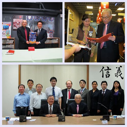 12月7-13日,执行校长应敏率文传学院院长陈志强、法学院书记盛钢、艺术与设计学院副院长邢双军、教务部副部长丁亚军等访问了台湾中国科技大学、南台科技大学和义守大学,应敏一行受到了台湾中国科技大学谷家恒校长、南台科技大学戴谦校长和义守大学林丽娟副校长的热烈欢迎。 在台期间,应敏和三位校长及其学校相关管理层研讨了做实做细既有合作项目、进一步拓宽和深化合作领域等问题,就教师交流、学生暑期夏令营安排的可行性、在读学生证照考试情况、学分互认情况、大学生品格教育情况等事项,与对方高校进行了广泛深入的交流。 访问期间代表团还与在三所学校进行交流学习的我校学子进行了面对面的交流,了解他们在台湾的学习情况、生活情况,勉励他们抓住机会认真学习,返校后与同学分享自己的交流心得,以便更好的促进两岸学子的交流。此外,代表团一行还考察了台湾高校的实验室和图书馆的运作和管理模式、学生自主管理校园保洁、学生宿舍等工作。 参访期间,适逢我校拔河队在台北体育馆参加“2014海峡两岸室内拔河友谊赛”,应校长一行参加该项赛事开幕式并为队员加油助威。