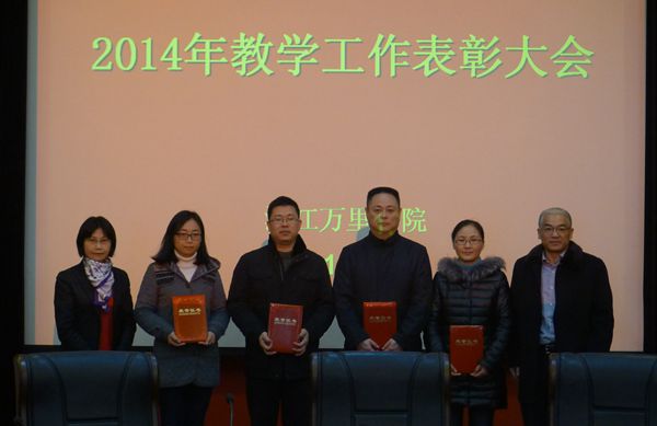 1月7日下午,2014年教学工作表彰大会在行政楼112会议室举行。执行校长应敏,副校长钱国英,纪委书记、工会主席陈建荣出席会议,各二级学院分管教学副院长、专业负责人以及获奖团队代表共50余人参加。会议由教务部部长马建荣主持。 钱国英指出,2014年研究性教学改革推进活动在各学院大力支持、各课程组积极努力下,得以继续深化与推广,为充分体现和鼓励教师们的辛勤付出,促进二级学院对教育教学改革工作的支持和投入,学校对2014年在研究性教学改革推进活动中取得显著业绩的团队和个人给予表彰与奖励。她宣读《关于2014年研究性教学改革推进活动表彰和奖励的决定》《关于公布“专业综合改造”主题征文活动评选结果的通知》以及《浙江万里学院关于表彰2013-2014学年“优秀教务员”的决定》的表彰文件。 应敏对获得各项荣誉的老师和团队表示祝贺,并感谢他们为之付出的辛劳。我校2014年的研究性教学改革,在专业综合改造、课程建设、教学方法改革、现代技术应用等方面都取得了显著成效,总结过去,展望未来,提出如下三点期望:一是进一步落实人才培养的中心地位,巩固完善教育教学改革的作用,全面推进育人工作;二是进一步深刻理解社会的变革、转型和升级,以产业、行业需求为导向,将研究成果转化为教学、课堂、实践素材,采用第三方评价接受社会的检验;三是进一步发挥学生在学习中的主体地位和教师在教学中的主导作用,努力构建“教师乐教、学生乐学”的良好氛围。他强调,创新驱动是永远的命题,希望各学院和专业课程团队再接再厉,积极参与校内联合、校企融合、产业行业融合,以更加专业、精准的思考,为我校成为特色鲜明的一流应用型本科强校而不断努力。 会上,学校领导为9门示范建设课程考核优秀奖、4门示范建设课程奖、18门研究性教学观摩活动参与奖、7个组织推动奖、16位优秀教务员以及20篇专业综合改造主题征文获奖代表颁发了证书。