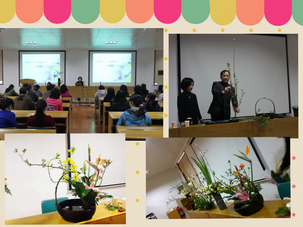 寒冷的冬天渐行渐远,春天的脚步缓缓而来,在百花待放的春日,插花艺术协会系列活动拉开了序幕——“温馨三八,呢喃花语”。 3月20日下午,在生物与环境学院64号楼314会议室开展了喜庆“三八节”的插花艺术活动。协会邀请了宁波市插花艺术协会秦雷会长、生物与环境学院刘青梅教授作花艺赏析讲座及现场DIY展示活动。 刘青梅教授结合自己在插花艺术上的经验,生动形象地讲解了插花所应具备的基础知识、技能以及所用工具,并对插花的历史、艺术流派、东西方插花花艺的区别进行了分析与介绍。 秦雷会长则亲自进行了现场插花艺术表演。秦会长边讲解边操作,灵巧地将枝条、叶片、樱花、海棠、鹤望兰等一些看似互不相干的素材,幻化成一件件各具特色的艺术作品。她们有的随意自然,有的妩媚惊艳,有的端庄秀丽......件件令在座的会员拍手叫好。场上拍照不断,惊叹不断,整个会场大厅弥漫着花与草的芬芳。 插花是自然美和装饰美的巧妙结合,以花抒情,借花明志,通过本次活动提升了会员们对插花艺术的了解,陶冶了情操,带给大家一份愉悦的心情,同时也向大家传递了一份节日的祝福。本次插花艺术活动在呢喃花语中落下了帷幕,会员们都纷纷期待下次活动的开展,表示意犹未尽。