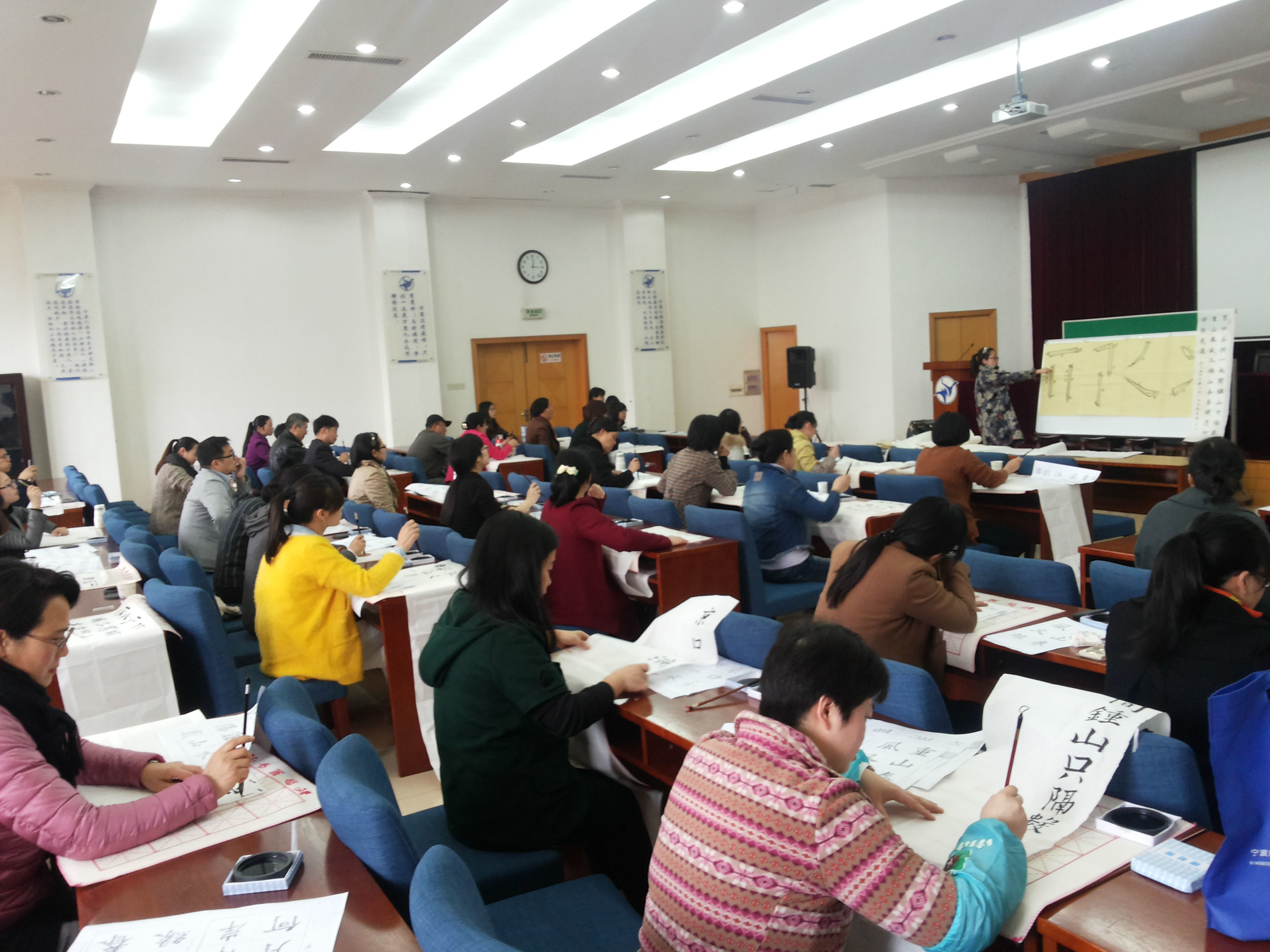 3月26日,浙江万里学院工会书法协会开设第一堂培训课,邀请浙江省书法协会理事李奇,针对毛笔的握笔姿势、行笔细节、收笔技巧展开详细讲述和现场指导,引导教职工探寻书法奥秘,帮助教职工提高书法水平。60多名教职工书法爱好者参加了此次培训。许多老师在领到砚台和书画毡时,兴奋不已,感觉重新回到了小时候练书法时熟悉的墨香时光。 本期书法培训,教职工们认认真真地练习了一个多小时,用热心和巧手开创了美好局面。指导教师用热忱和指导带来了欢笑和信心,为学校书法爱好者提供良好学习平台,丰富了校园文化,受到教职工的欢迎和青睐。有教师表示:“书法培训给老师们带来一个有意义和活力的业余休闲时光”。 (机关一分工会 书法协会) |