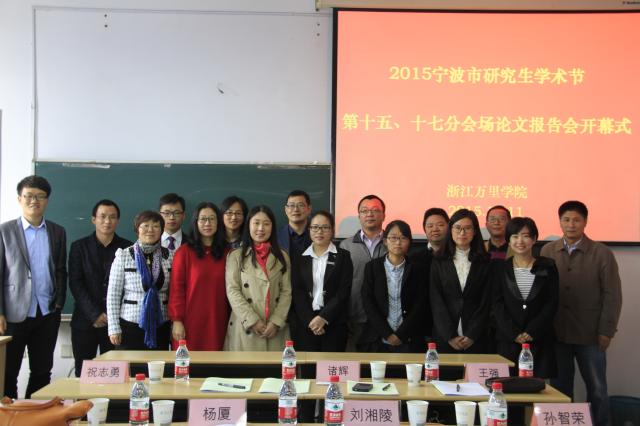 11月11日上午,2015年宁波市研究生学术节第十五、十七分会场论文报告会在我校举行。来自市科协、宁波大学、兵科院宁波分院、浙江大学宁波理工学院、中科院材料所、浙江大学软件学院等兄弟高校院所的领导、嘉宾及评委老师出席本次报告会,论文报告人、研究生及联合培养研究生110余人参加了报告会。