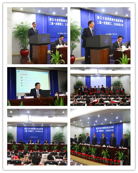 2015年11月21日上午8:30,现代物流学院二届一次教职工、工会会员大会在图书馆报告厅隆重举行,校党委书记蒋建军、校工会主席陈建荣出席大会。