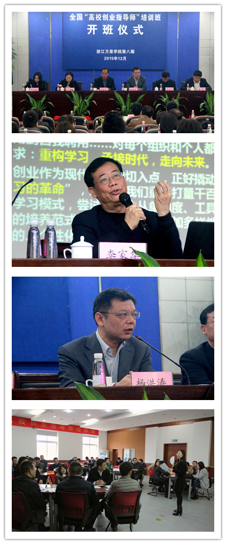 教育部全国中心杨洪涛处长在讲话中表示,国家对大学生创业颇为重视,接下来的工作重点是如何全面推进高校创业,如何做到投身创业人数增多、学生创业意识增强、培训能力质量提升。杨处长还指出,当务之急是要培养创业师资队伍,实现创业师资的职业化、专业化、专家化,加强万名创业指导的师资建设。杨处长指出,浙江万里学院拥有良好的外部条件和浓厚的创业氛围;从2011年的试点班,到今天的第八期培训班,培训取得了突出的效果,并希望本次参训的学员们能够端正态度,加强学习交流,有所获益。