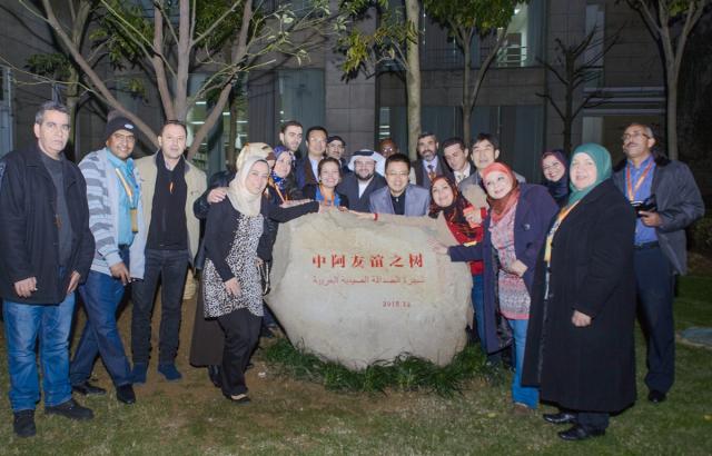 2015年11月22日——2015年12月12日期间,在中阿合作论坛框架下,由国家文化部外联局、浙江省文化厅、宁波市文广局主办,宁波博物馆、宁波海上丝绸之路研究院、北京外国语大学共同承办的《首期阿拉伯国家文物(纸质)修复专家研修班》在浙江万里学院顺利成功举办。12月8日,举行了结业典礼,文化部外联局亚非处、浙江省文化厅、宁波市文广局、浙江万里学院等领导与10国的阿拉伯国家文物专家学员们一起,在浙江万里学院图书馆门前草坪栽种下“中阿友谊之树”——香樟树,寓意中阿交流“枝繁叶茂”、中阿合作“冠盖广展”,中阿友谊“深厚长久”。这是第一次聚合了10个阿拉伯国家20名专家一起在宁波种下的第一颗友谊之树,也是“21世纪新海上丝绸之路”上宁波栽种的第一颗海丝之树。