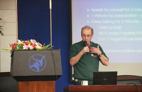 12月29日,英国杜伦大学讲师David Barnes来访,为创新学院同学带来了一场关于如何提高英语交流能力的学术讲座。David Barnes是一名从事社会科学研究的老师,具有多年学术英语教学的经验。