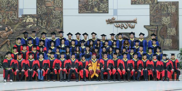 毕业典礼结束后,参加典礼的领导、教师们与全体2016届研究生合影留念。