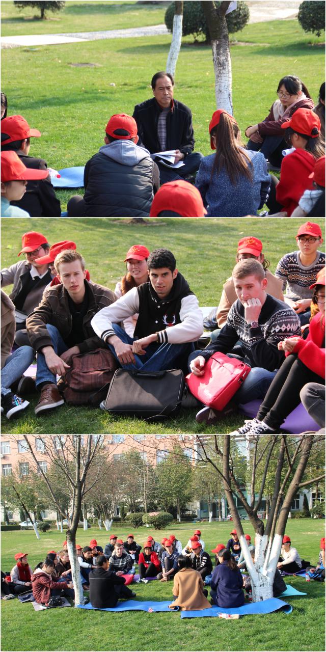 青青草地,莘莘学子。3月2日下午,我校一号教学楼后面的草地上出现一抹红色的风景线。学生干部“阳光成长”系列活动之“我与志愿服务的故事”主题分享会在这里举行。校党委书记蒋建军老师、校团委相关老师与我校30多名志愿者代表席地而坐,用一种轻松愉快地方式畅谈了那些发生在志愿服务期间感动与收获的故事。同时座谈会还邀请到了我校的三位法国留学生参与。