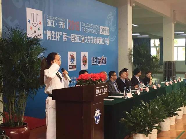 2016年4月16日由浙江省跆拳道协会主办,浙江省大学生体育协会武术分会、宁波市跆拳道协会协办,浙江万里学院承办的第一届浙江省大学生跆拳道公开赛,与4月17日圆满落下了帷幕。本次比赛共20个高校200多名运动员参赛,经过2天紧张激烈的角逐,东道主浙江万里学院跆拳道女队荣获团体冠军,其中现代物流学院沈婷婷等同学荣获5枚金牌。湖州师范学院荣获男团冠军。