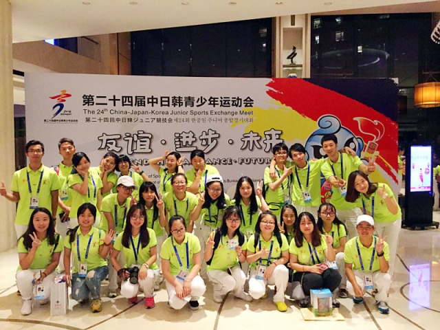2016年8月23日至29日,第24届中日韩青少年运动会在宁波隆重举行。我校30名志愿者在此次赛事中承担了比赛场地引导、语言翻译及行程安排、开闭幕式等大型活动协助等岗位的志愿工作,共计服务近千人次。在比赛期间,同学们以热情、周到、细致的高水平服务完成了相关工作,展示出了万里学子的青春风采。