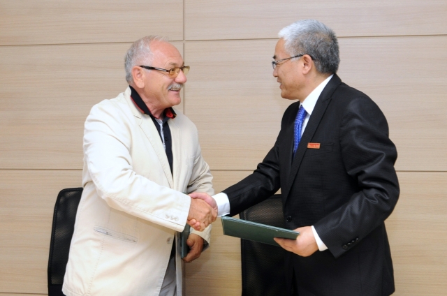 8月25日下午,代表团一行访问了斯洛伐克农业大学。该校校长、副校长、各学院院长十余人热情地接待了访问团。在签约仪式上,执行校长应敏进行了主旨发言,详细介绍了我校的基本情况,并对两校的合作与交流作了展望。两校就未来的学生交流、伊拉斯姆项目申请签订了相关协议,并期待未来在科研上也能有国际合作。会后,代表团还参观了该校的生物技术实验室,体验了高科技的魅力。