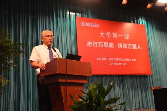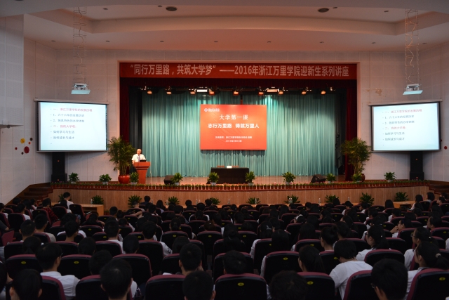 9月19日,在隆重的开学典礼后,执行校长应敏在基础学院素拓中心向全体新生讲授题为“志行万里路,铸就万里人”的大学第一课。包括素拓主会场及各阶梯教室分会场近5000名新生认真聆听了这堂充满意义的一课。