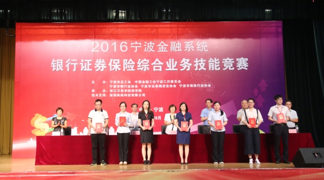 2016年9月25日,宁波金融系统银行证券保险综合业务技能竞赛开幕式于我校素拓中心举行。本次大赛分为银行综合业务技能竞赛、证券综合业务技能竞赛和保险综合业务技能竞赛3个大类,共有80余家单位,近700人参加比赛。宁波市总工会副主席韩彭军、宁波市证监局副局长陆意琴、宁波保监局副局长陈红、浙江万里学院执行校长应敏以及各参赛单位的领导与参赛选手参与了此次开幕式。