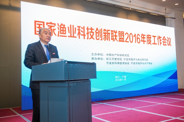 近日,由中国水产科学研究院主办,我校与宁波市科学技术协会、宁波市海洋与渔业研究院等单位联合承办的国家渔业科技创新联盟工作会议在宁波市富邦大酒店顺利召开。中国水产科学研究院崔利锋院长、刘英杰副院长,农业部科教司政策体系处调研员窦鹏辉、中国农业科学院科技局副局长熊明民、浙江省海洋与渔业局和宁波市海洋与渔业局相关领导参加会议,来自全国的涉渔高校、科研院所及企业100余名代表参加会议。我校执行校长应敏代表学校致辞。