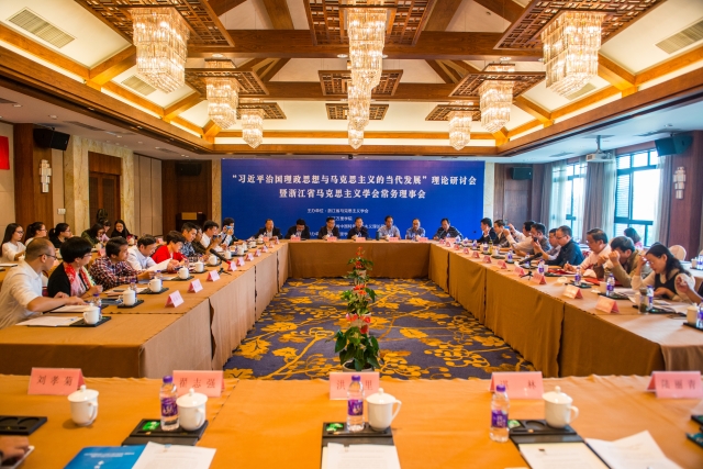 近日,浙江省马克思主义学会常务理事会2016年年会暨理论研讨会在宁波召开。本次会议以“习近平治国理政思想与马克思主义的当代发展”为主题,由浙江省马克思主义学会、浙江万里学院、浙江省中国特色社会主义理论研究中心主办,由浙江万里学院承办。来自浙江省社会科学院、社科院、省委党校,各高校的40余名常务理事参会,会议分两个阶段,由浙江省马克思主义学会会长、浙江大学博士生导师、原浙江社会科学院院长万斌教授主持。
