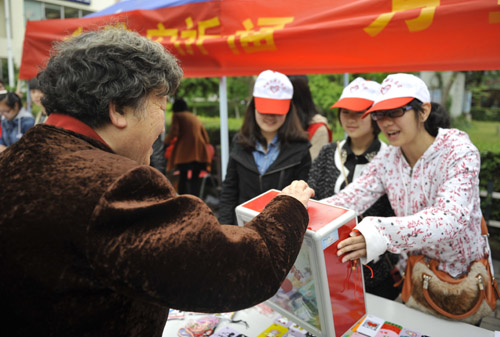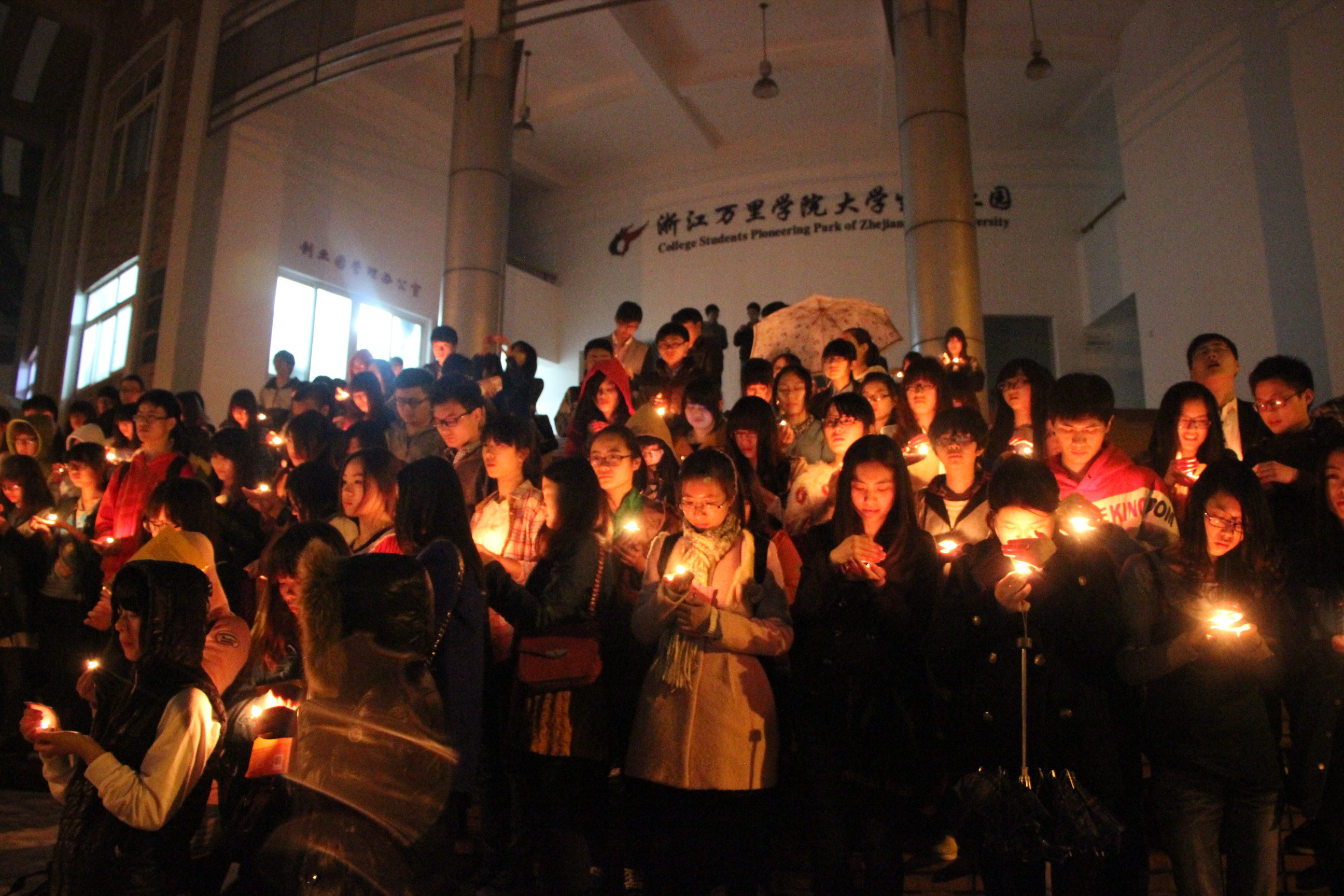 4月22日晚,我校学子在素质拓展中心前举行了为雅安祈福的活动。这场祈福活动由万里青梅和我校社团理事会联合主办,由文传学生会、微博协会、广告人协会、文传青协、万里电视台、市场营销协会协办。 “雅安,加油。”这句是每个人心底的话,而活动现场就放着这样一个字幅。素拓前面站满了为雅安祈福的同学,大多数的人冒着雨在为逝去的同胞默哀。素拓前面的空地摆开蜡烛并且呈现出心形,中间摆出了“4.20”字样。点燃的蜡烛是点燃的爱心,是点亮的希望,同学们用自己的身体为这些点燃的蜡烛挡去雨水的侵袭。 现场有着很多的同学,而那刻却安静得只剩下诗朗诵者袁煜铿锵有力的声音。开头的一句“安详的雅安不再安详”牵动着多少人的心。8点02分,在场同学齐喊的一声“雅安,加油”又是如此得振奋人心。 大二法学专业的张同学说:“汶川大地震之后又一场地震,对于四川来讲是很大的打击,但是我们都在为他们祈福,希望他们能够渡过难关。另外,之后还有为期一星期的捐物活动,我们都会为雅安做一些力所能及的事。” 4月20日四川省雅安市芦山县发生7.0级地震。地震发生之后,全国各界人士纷纷伸出援助之手,为雅安出力。 在这场祈福活动之前,我校义教中心于4月21日下午在宁波市海曙区欧尚超市前举办过一次名为“心系雅安”的爱心义卖。参与这次义卖的同学共30名,大多是大一新生,分别来自于艺术、法学、建筑等专业。 现场的义卖品主要是我校同学亲手制作的手机挂件、十字绣、手绘体恤衫等,其中还有宁波市海曙区区长吴胜武捐出的50本《政府是平的》一书。我校义教中心指导老师杜飞明说道:“我们从20日晚9点开始准备,学生用自己的专业所学,为雅安灾区尽一份力。” 参与义卖的陈远笛同学提到,很多热心人士捐了钱却并没有拿走义卖的东西,这让她很感动。杜飞明老师还强调一定保证善款善用,募集到的善款会在当晚就汇到援助雅安浙江基金。 (宣传部通讯员周翠翠) | |