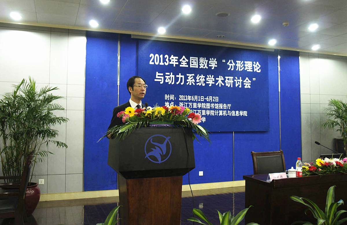 6月1日上午,由全国分形与动力系统组委会主办、我校计算机与信息学院承办、清华大学协办的2013年全国数学“分形理论与动力系统学术研讨会”在我校图书馆报告厅隆重开幕。来自巴黎第十一大学、香港中文大学、清华大学、复旦大学、浙江大学、南京大学、中科院等高校的近140名专家学者参加了此次盛会。 我校党委书记、执行校长陈厥祥代表承办单位向与会代表和来宾表示热烈欢迎,并介绍了浙江万里学院近年来的改革发展情况,肯定了我校应用数学学科所取得的一系列成绩,希望清华大学等著名高校的专家学者多给学校发展提建议,多帮助学校各类事业发展,也希望参会学者加强交流,共同推进数学学科的大发展。清华大学文志英教授代表协办单位感谢浙江万里学院为本次盛会提供了优异的硬件设施,希望通过本次研讨会,加强学术信息与学术动态交流,促进学科发展。 开幕式后,巴黎第十一大学的Jacques Peyriere教授、香港中文大学的刘家成教授、清华大学的文志英教授分别作了精彩的大会特邀报告。 本次研讨会为期2天。与会期间,代表们围绕分形几何(分形集结构的研究、维数与测度、随机分形、重分形、Tiling、自动机、分形分析与分形PDE、分形几何及应用、分数阶微积分)、动力系统(复动力系统、微分动力系统、Hamilton动力系统、离散动力系统、拓扑动力系统、遍历理论)、概率论与分形几何等主题进行了46场分组报告和讨论。 (计算机与信息学院) |