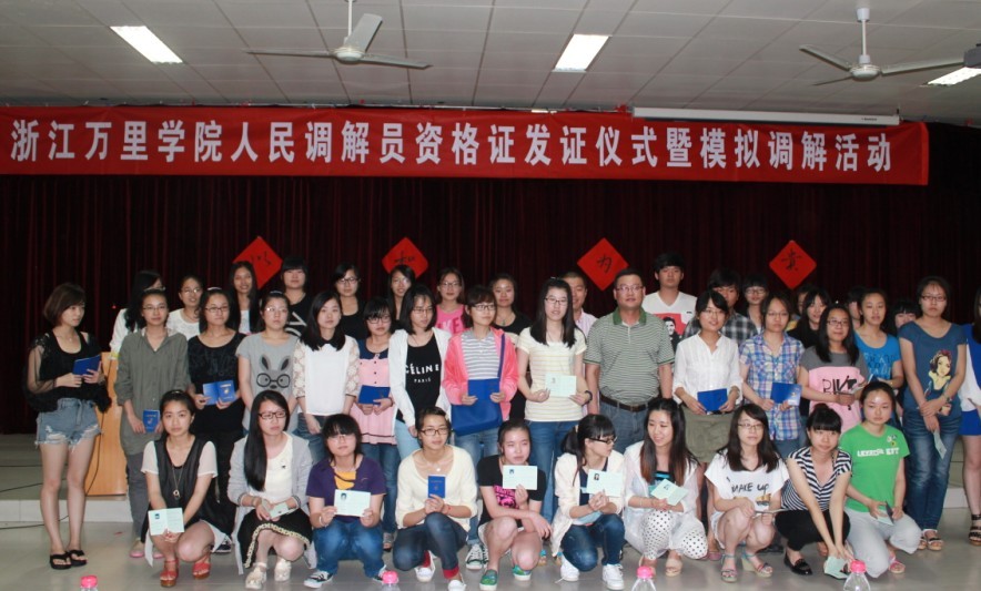 6月7日下午,以“维护学生权益,构建和谐校园”为主题的浙江万里学院法学院人民调解员培训发证仪式暨模拟调解活动在53109举行。 2012年11月3日,鄞州区司法局与我校法学院联合组织的人民调解员资格证书考试,共有200余名在校生参加了考试。经过成绩评定和一年多时间实践考核,组织方最终确定了47名同学取得了由市司法局颁发的人民调解员资格证书。发证仪式上,宁波市司法局人民调解工作处虞存斌处长、鄞州区司法局人民调解科毛磊科长以及法学院院长揭明教授、法学院党总支书记盛钢老师、法学院副院长丁寰翔老师为新一届47名学生人民调解员颁发了资格证书。 截至目前,法学院已经组织了9次人民调解员资格证书考试,共1196名学生取得了人民调解员资格证书。这些万里学子怀揣调解员证书走向社会。不少学子直接进入基层司法所,当起专职“老娘舅”。许多毕业生进入政府机关后,各方面能力都获得了单位领导的充分肯定。 (法学院) |