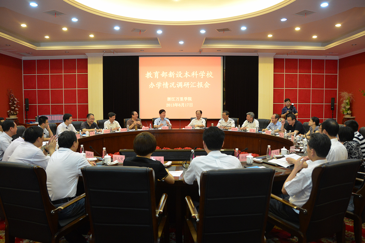 近期,教育部组织有关专家,分两组先后对浙江、江苏、广东等5省的8所新设本科院校进行专题调研,旨在更好地推动其科学发展,尽快走出一条应用型人才培养和应用型本科建设之路。 6月17日,教育部新设本科院校办学情况调研专家组一行6人来到我校,开展新设本科院校的“回头看”工作并进行如何办好应用型本科的调研。教育部和教育厅高度重视此项工作。规划司副司长郭春鸣、浙江省教育厅副厅长褚子育及规划司院校设置处王雪涛处长、教育厅计财处张悦副处长等全程陪同考察。 在行政楼112会议室,浙江省万里教育集团董事长、我校理事长徐亚芬,集团党委书记、总裁应雄等全体集团领导,我校党委书记、执行校长陈厥祥等全体校领导参加了调研汇报会,对专家组的到来表示热烈的欢迎。 专家组组长、原安徽省教育厅厅长、省委教育工委书记陈贤忠主持汇报会并对专家组的调研目的、方式进行说明与部署。他指出,此次受教育部委托对1999年以来新设本科院校进行复查并提出评估意见,将从内涵建设、学科方向、定位、模式、课程设置、人才培养保障、实验室和实习基地建设等方面进行系统调研,探讨如何办好应用型本科院校这一问题,希望大家畅谈在建设过程中的问题与体会。本次调研分为四个环节:汇报会、实地考察办学条件、座谈会(董事会、机关院系、教师代表)、沟通反馈。 随后,我校党委书记、执行校长陈厥祥作了题为《学以致用,经世济民》的工作报告。陈书记认为:“这次调研是对我校15年体制机制创新办学的全面检阅和综合考评。我校体制创新首开中国大学管办分离,‘全新的模式,独特的机制’成为中国高等教育大众化进程的滥觞。”在我校应用型本科人才培养工作报告上,陈书记汇报了学校坚持“以生为本”,提出“知行合一”,在学校发展建设中因地制宜、因势利导,积极落实地方政府提出的服务型教育体系和创业型大学建设,同时注重内涵发展,坚定应用型本科人才培养的目标,并择要向专家讲述了围绕人才培养中心的特色做法。最后,陈书记提出四点办学体会:以生为本,教学为要;借助外力,主动变革;面向需求,学科强基;内涵发展,特色强校。 徐亚芬理事长向专家组介绍了万里既不同于国立又不同于民办的独特办学机制,办学十多年来取得的成效、经验,中外合作办学的成果,应用型人才培养的样本意义,作为举办者在办学过程中的坚守与理想等。 汇报会结束之后,专家组成员在我校领导的陪同下,对我校办学条件进行实地考察。 在生物与环境学院,钱国英副校长向专家介绍生环学院的基本情况、开展工程硕士(生物工程领域)教育以及浙江省重中之重学科“现代微生物技术与应用”建设情况。调研组专家在考察水生生物健康养殖实验室时,钱国英副校长汇报,类似的实验室主要的设备都是给学生进行实训活动,这些实验室除了对研究生开放还对本科生开放,而学生得到的一些数据可以拿到工厂直接应用生产。专家组组长陈贤忠表示,这是学校在为企业服务,并且还用科研来促进教学,既有研究性又非常个性化。而教育部规划司副司长郭春鸣觉得我校不仅重视设备建设同时还紧抓科研团队的建设。之后,专家们参观了浙江省水产种质资源高效利用技术研究重点实验室,并且品尝了学院为服务于现代农业而自制的桑果汁。 在计算机学院的软件服务外包实践基地,专家组详细了解了达内企业与我校的合作情况;在电信学院,专家组参观了我校跟华为合作的现代移动通信实验室。在了解了培训项目情况后,陈贤忠组长说:“这样将培训嵌入到专业学科中,是一项特色。” 专家组对我校“文科中的理工科”的办学情况非常感兴趣,和校领导来到商学院、物流学院。学院领导对两个特色班进行了介绍,特别是跨专业综合实训平台。专家们在虚拟公司对学生的岗位选择、工作环境和工作平台进行了了解,参观了港口物流实验室。在文化与传播学院,专家们参观了传媒实验中心演播厅、中国宁波网流媒体基地。在学院领导介绍“3+1”教学时,陈贤忠组长表示这样的实践环节很有特色并且实用。 最后专家组进入我校大学生创业园和阳光大厅进行参观。陈厥祥书记介绍说:“万里学院始终指向‘育创新性人才,建创业型大学’的办学目标,‘创新’和‘创业’一直是学校培养人才的核心。”专家们十分认可我校的创业成果。 下午,进入座谈会环节,专家组在两个会场分别举行座谈会,与我校教师进行座谈,全面了解应用型人才培养过程中情况。 最后,专家组进行了调研情况总结会,就相关情况对万里集团与我校进行反馈。 专家组组长陈贤忠主持总结会。专家组成员西安科技大学党委书记王斗虎,原广东省教育副厅长张泰岭,清华大学原副校长、高评委副主任郑燕康,中南大学博导、湖南省委高校工委原副书记时章明,大连东软信息学院院长温涛等相继发表讲话,对我校在应用型定位、专业特色凝练等方面扎扎实实地开展工作表示充分肯定,对我校创新办学、体制活力、高效廉洁的治理结构表示充分赞许,对我校办学理念、办学定位、办学举措表示充分认可,同时,对我校如何进一步提升办学水平、凝练办学特色提出了富有真知灼见的建议。 专家组组长陈贤忠认为,万里学院在体制机制创新、应用型人才培养上做了很多工作,希望学校加以认真研究