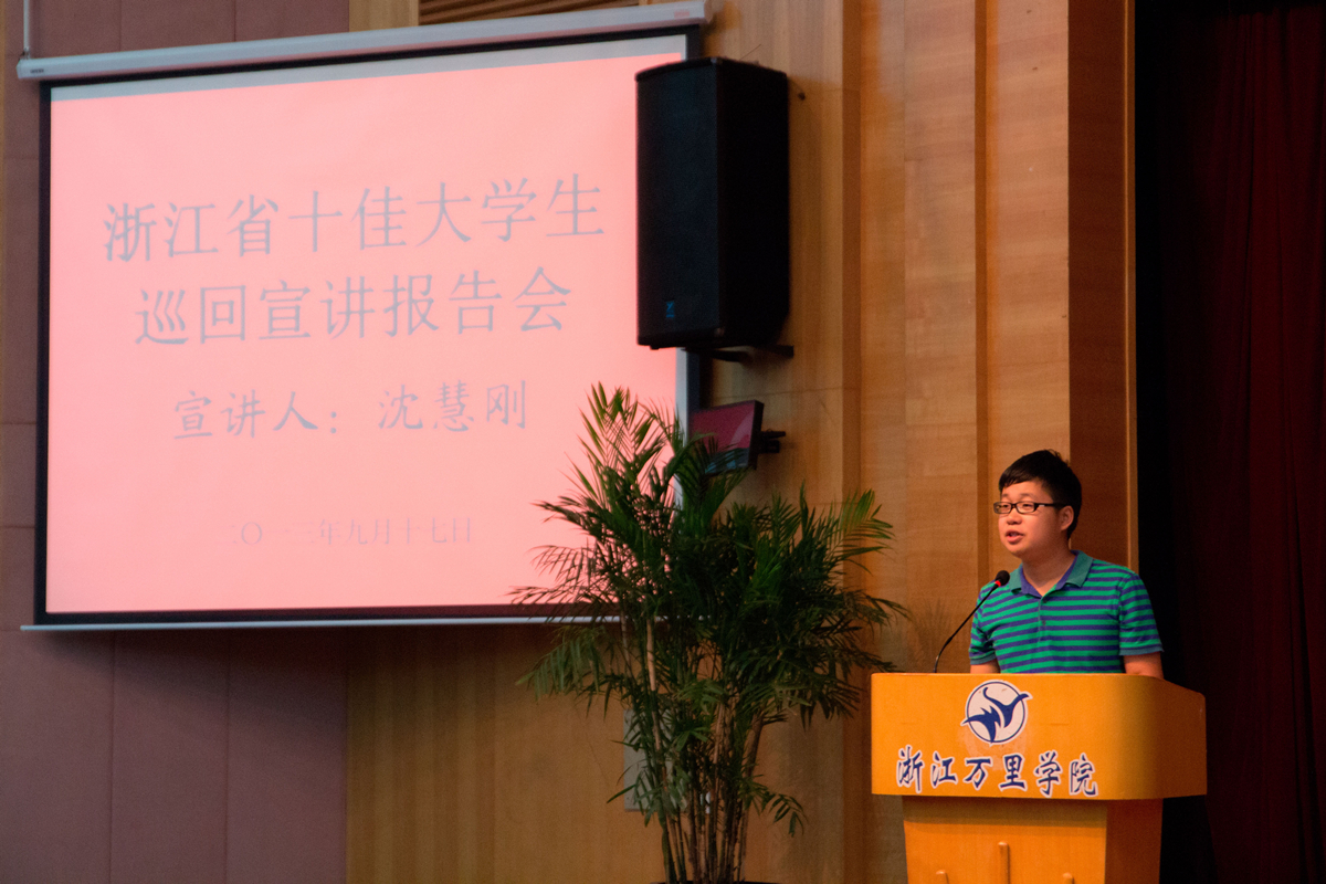 9月17日下午,由省教育厅组织的浙江省十佳大学生巡回宣讲会在我校学术报告厅隆重举行,500余名学生参加了此次宣讲会。宣讲会由省十佳大学生沈慧刚和曹圣婷主讲。 宣讲会中,来自浙江农林大学的沈慧刚和湖州职业技术学院的曹圣婷用自己的行为对校园与青春进行了解读,用自己的经历告诉广大学子青春因奉献而精彩。曹圣婷讲述了自己与吴沈洁相识相知并且相互照顾的过程。在曹圣婷高二那年,她与她的同学吴沈洁相熟,在上学的路上她们已经一同走过了四年。因为她的同学吴沈洁小时候因脊柱受伤,脚神经受到压迫,多年来一直行走不便,从高二至今的四年多里,吴沈洁在追寻“求学梦”的路途中,身边一直有曹圣婷的搀扶相伴。在宣讲过程中,曹圣婷的语气充满了热情与活力,她说能够帮到吴沈洁的只是些小事。反而吴沈洁却一直让她很感动。 沈慧刚讲述了自己“智斗美洲狮,勇救二龄童”的传奇故事,并讲述了对于大学期间学会的在自己人生决定中起着重要的作用的两件事。第一,培养一个有意义的兴趣——帮助他人,并坚持不懈为之努力。沈慧刚觉得力所能及地去做一些志愿服务是一件非常幸福的事。在加拿大交换期间,他就经常参加社区公益、政府慈善活动,去当地教堂任长期义工。在帮助他人、服务他人的过程中,收获的幸福是无以言表的。“在迈尔斯的孙子遇险时,我很害怕,但我没有犹豫,当别人需要你的时候,你伸出援助之手,可能仅仅是微薄之力,但点燃的或许就是一盏希望的明灯。所以,我做了。”第二摆正自己的专业定位。“简单地来说,正因我平时在英语专业学习中的不懈努力,我才能获得加拿大昆特兰理工大学的交换生机会。”只有正视并重视自己的专业学习,才能在不断的付出中收获希望。 据悉,本届浙江省十佳大学生评选活动的主题为“建设美丽校园,追寻最美青春”,今年是第三届评选。我校会展101班学生陈超俊荣获第三届浙江省"十佳大学生"入围奖。陈超俊同学入学以来,一直保持着优异的成绩,获得国家奖学金、校奖学金,先后担任宁波市会展经济研究所(宁波市政府2003年批准设立)所长助理,宁波市会展创新创业孵化基地主任(学校2011年与宁波市会展业促进会联办),校会展党支部副书记,校国际SIFE团队副队长,浙江省宁波市博远创业有限公司副总经理,以及校大学生会展研究会副会长。他投身志愿、孜孜不倦,致力实践、奉献会展,创新创业、硕果累累,注重素养、综合发展的事迹以及在担任宁波市会展经济研究所第三任学生所长助理时的工作成果获得了国家教育部高教司副司长刘贵芹的充分肯定。 我校在培养学生成长成才的过程中也着力于通过引导和激励大学生立志成才、刻苦学习、创业创新、奉献社会、报效祖国,来展示当代大学生的青春风采,从而大力弘扬社会主义核心价值观,并涌现出了如共青团十七大候补委员潘金生等各类优秀代表。 (学生事务与发展中心通讯员郭淑文、俞莎莎) |