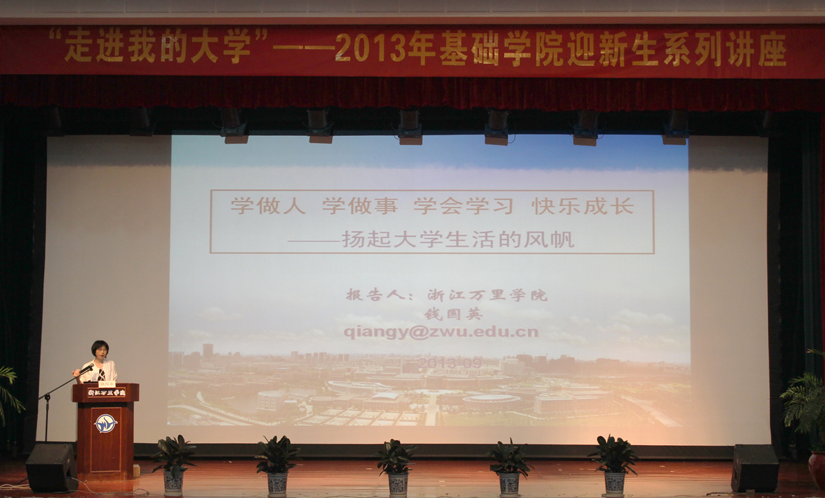 9月25日晚,副校长钱国英教授在基础学院素质拓展中心,为我校2013级新生作题为《学做人,学做事,学会学习,快乐生活》的始业教育报告,让新生一进校门就知道怎样科学规划大学学习生活,引导学生的大学学习。基础学院党委书记、副院长高玉宇主持报告会。 钱国英副校长的报告从“怎样科学规划大学学习生活”谈起,指出,做一名合格的大学生,就要成为一个有社会责任感的人、一个有能力为社会服务的人。人的非凡才能那里来?在与众不同的努力里,在平时默默无闻的学习里,在认真独立的思考里,在日积月累的探索里。大学学习要为走向社会做准备,做一个于社会有用的人,既要考虑自己发展的目标,又要了解社会的期望。大学教育的目的就是通过知识的学习,使学生获得自我获取知识能力、批判性思维的能力和创新知识的能力。学会自我学习知识的能力,比掌握知识本身更重要 ,大学不是“职业培训班”,而是一个让学生适应社会,适应不同工作岗位的平台。在大学期间,学习专业知识固然重要,但更重要的还是要学习独立思考的方法,培养举一反三的方法。 钱副校长强调,做学问的前提是要先学会做人,在大学学习最重要的就是要学会做人,要厚德载物,常怀感恩之心,以诚待人,培养真正的友情。学会宽容就学会了人生,成功源于合作,合作源于信任,信任源于理解,理解源于沟通。沟通是解决人与人之间矛盾、隔阂和误会的行之有效的方法,学会沟通是社会能力提升的重要部分,同时也是良好学习的前提。 最后,钱副校长鼓励同学们在校学习期间,要积极参与,培养兴趣;主动沟通,全面发展;正视现实,感恩向上;“以终为始”,积极地规划大学四年学习生活,培养自己对学问研究的兴趣,使自己成为拥有健康的人格、健全的身心、良好的心理素质、有获取新知识与创新知识能力的社会有用之才。 (基础学院) |