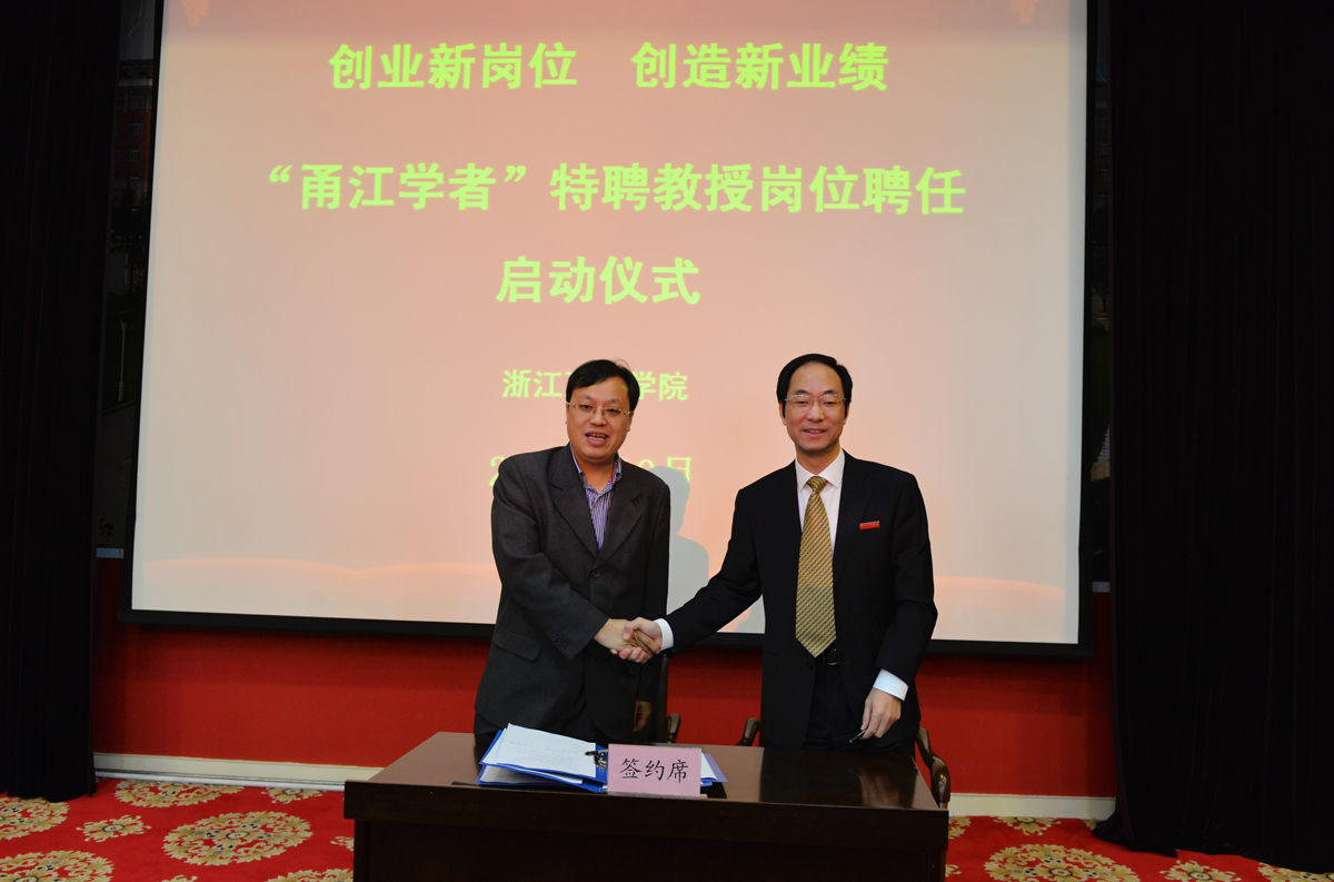 陈厥祥书记代表学校与“甬江学者”特聘教授蒋天颖签订了岗位聘任书,明确了双方的权利义务、“甬江学者”岗位职责及聘期考核等内容。