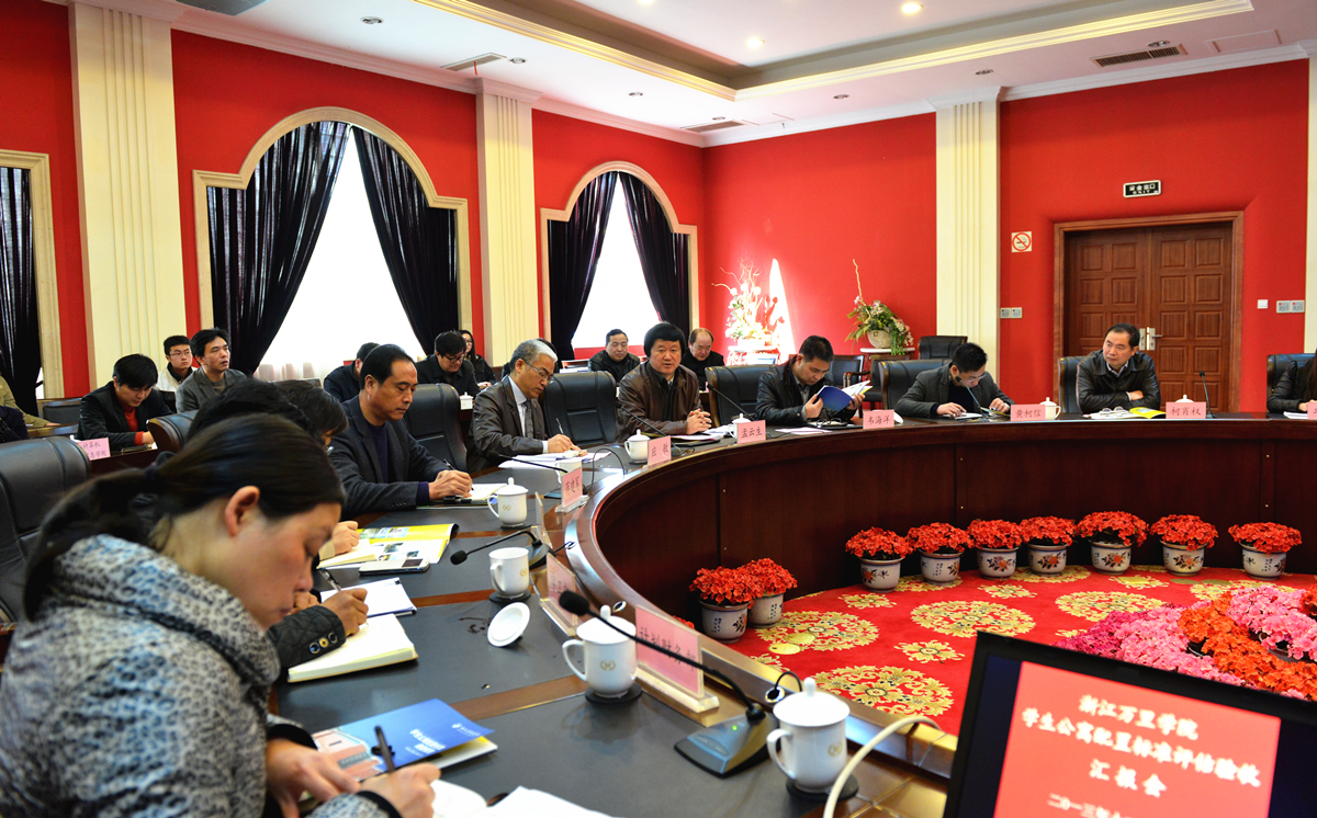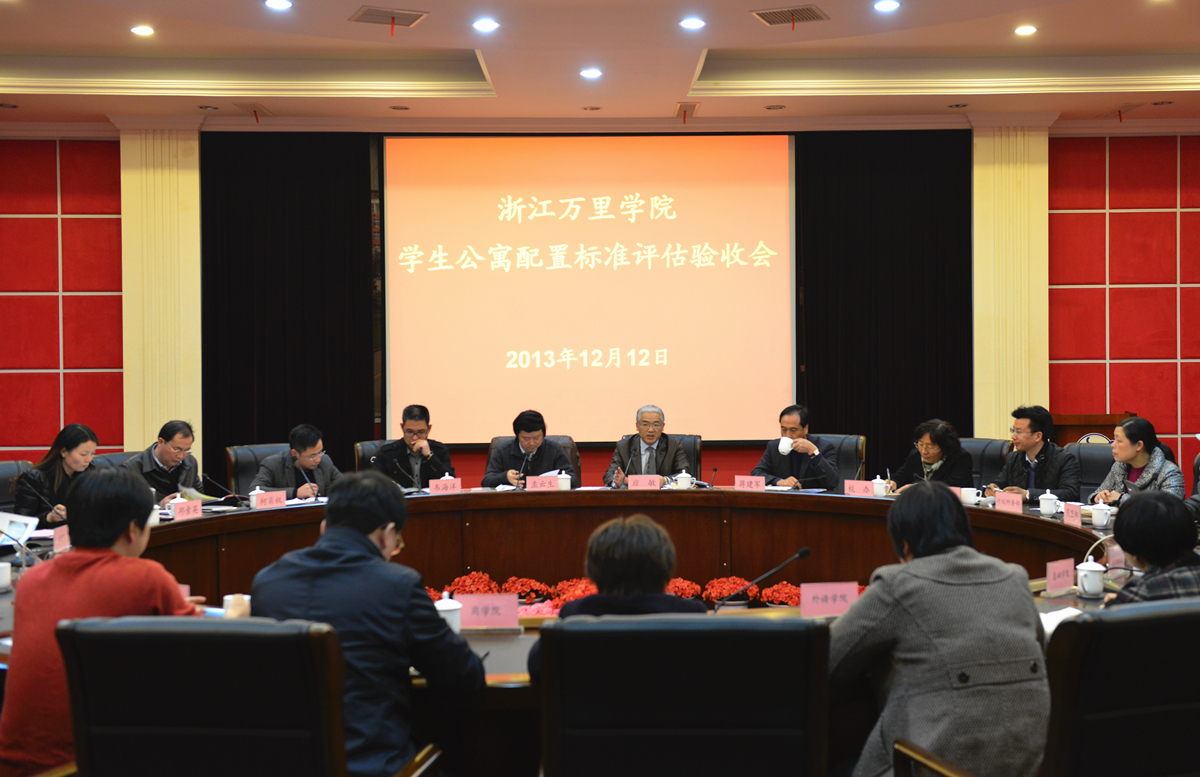 |   12月12日,以中国美术学院孟云生副院长为组长的浙江省高等学校学生公寓配置标准评估验收专家组一行6人莅临我校,对我校学生公寓配置标准工作进行评估验收。副校长应敏,校党委副书记、副校长蒋建军,以及相关职能部门负责人、各二级学院党总支(党委)书记、宁波万里后勤服务有限公司、宁波万里启航后勤服务有限公司领导参加了上午的汇报会。汇报会相关议程分别由应敏副校长和专家组孟云生组长主持。校党委副书记、副校长蒋建军致欢迎辞。他首先对省教育厅专家组的莅临指导表示热烈欢迎,向专家组简要介绍了学校的发展情况和取得的成绩,尤其是学校如何围绕“以生为本”的办学理念,在学生公寓建设、文明寝室建设等方面的进展。最后,他真诚希望教育厅专家组对我校标准化公寓建设工作尤其是寝室文明建设多提宝贵意见,以进一步促进我校学生公寓、社区文化、寝室文明等各个方面的建设工作。