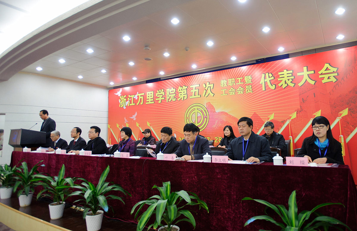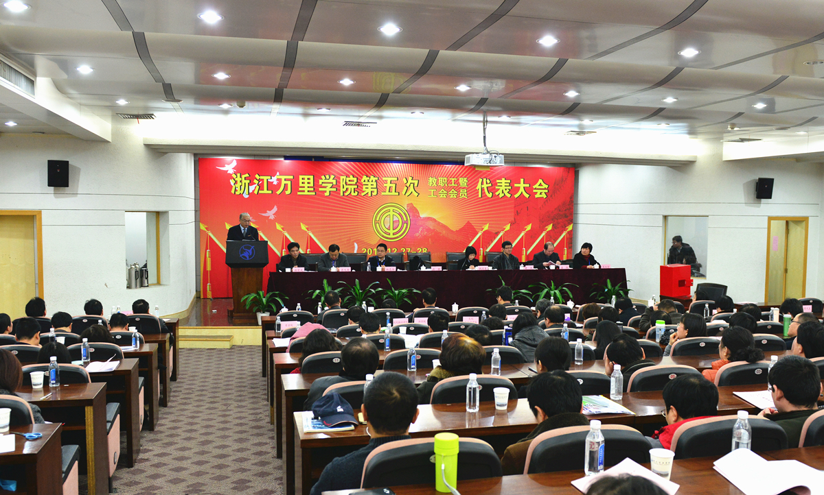 12月27-28日,浙江万里学院第五次教职工暨工会会员代表大会在钱湖校区图书馆报告厅成功举行。浙江省教育工会副主席陈勇、宁波市总工会副主席叶春、宁波市教育工会主席李立明、宁波大学工会副主席刘缨,以及学校理事长徐亚芬、万里教育集团党委书记应雄等领导出席会议。140余名正式代表、列席代表参加大会。 大会在庄严的国歌声中拉开帷幕。校党委副书记蒋建军致开幕词。省教育工会、市总工会、兄弟院校工会代表分别致词。党委书记陈厥祥讲话。他们对学校建设五年来所取得的成绩给予了高度评价,并对学校的发展未来进行了美好展望,对广大万里人在强校建设上提出了殷切希望和美好祝愿。 学校理事长徐亚芬在会上作了重要讲话。她对学校的办学体制机制、学校的文化、如何更好得成为万里人,作了充分的阐述,再次重申了“同心圆”的服务理念,即集团以学校发展为中心,学校以教师发展为中心,教师以学生发展为中心,后勤工作和后勤公司以师生生活为中心。 代理执行校长应敏代表学校行政向大会作了题为《创新驱动 综合改革 齐心协力推进特色鲜明的一流应用型强校建设》的工作报告。报告共分为三大部分,一是转型升级,学校事业发展格局良好成绩喜人;二是深思毅行,在新起点新态势下把握发展主旋律;三是深化强院工程,开创特色鲜明一流应用型强校建设新境界。 工会主席陈建荣代表学校工会向大会作了题为《凝心聚力 同频共振 为推进特色鲜明的一流应用型强校建设作出新贡献》的工作报告。 会议期间,各代表团对校长工作报告、工会工作报告、提案工作报告、学校财务工作报告、工会财务工作报告、浙江万里学院教代会专门委员会职能、浙江万里学院工会各专门委员会职能、浙江万里学院提案工作办法等文本进行认真讨论、审议。各位代表积极建言献策,提出了许多建设性意见、建议,既为学校未来的改革发展出谋划策,也真实地反映了广大师生员工的呼声,充分体现了民主公开、履行监督、维护权益、共谋发展的“双代会”精神。 大会充分酝酿,发扬民主,选举产生了第五届工会委员会和工会经费审查委员会,通过了第五届教职工代表大会执行委员会组成人员名单,通过了第五届“双代会”各专门委员会组成人员名单,为今后教代会、工会工作的顺利开展提供了组织保证。 28日上午11时,大会顺利完成各项任务,圆满闭幕。代理执行校长应敏致闭幕词。他对到会的各位代表和全体工作人员的劳动表示感谢并号召全体代表,一定要以高度的主人翁精神,传达好“双代会”精神,部署好校长报告中的各项工作,在万里的旗帜下,在改革的大潮中,奋力开拓,协同创新,为把我校建设成特色鲜明的一流强校而奋斗! 大会结束后,第五届工会委员会和工会经费审查委员会成员分别召开了第一次会议,选举陈建荣为校工会主席,董俊峰、王加强、闻一平、张晶为工会副主席。 (宣传部通讯员曾雅琪) |